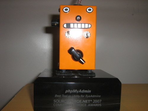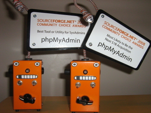 For the first annual SourceForge.net Community Choice Awards, phpMyAdmin won the first place in two categories: Databases and Sysadmin.