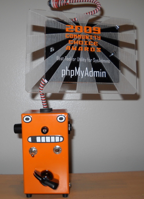 For the 2009 SourceForge.net Community Choice Awards, phpMyAdmin was present in two categories: Best Tool or Utility for Developers (finalist) and Best Tool or Utility for SysAdmins (winner).