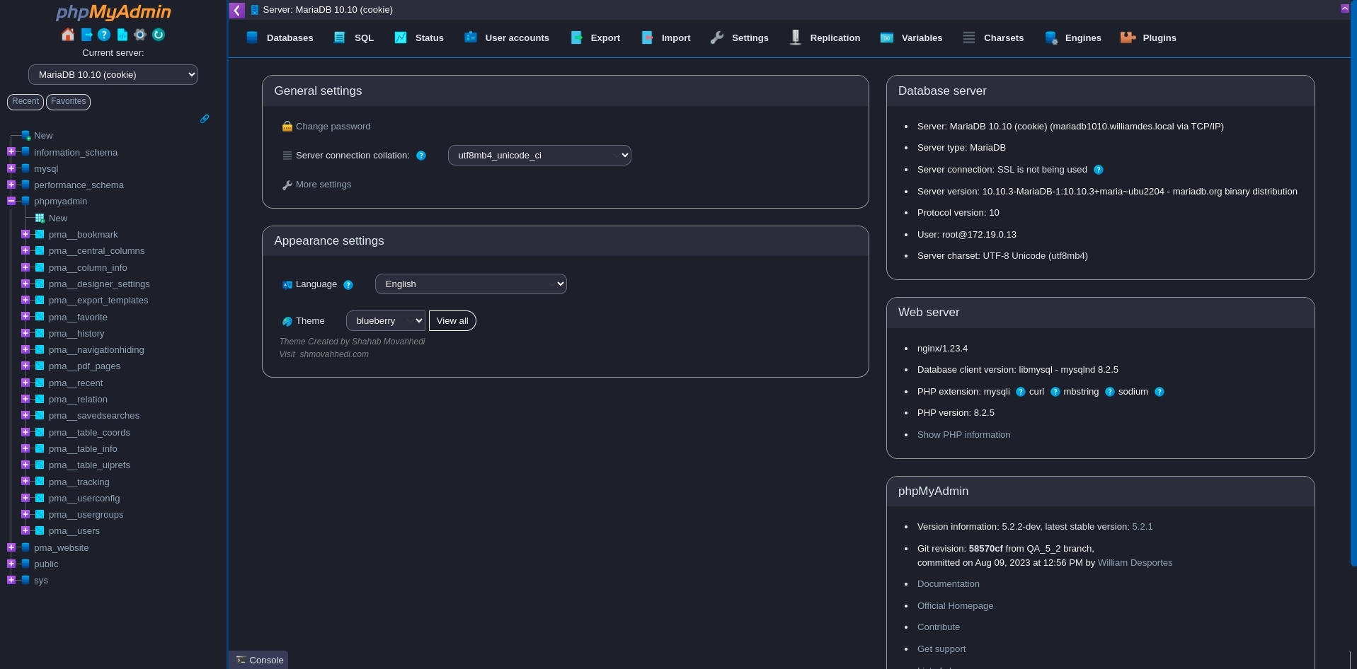 phpMyAdmin has supported themes since version 2.6.0. Not all themes are compatible with every phpMyAdmin version; please select the version you are using below.